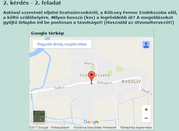 2. Google Maps útvonaltervezőjének használata – Kulcs: szám, mely a távolság értéke. (Ebben az esetben a beállítás szerint egy tól-ig számot fogad el az űrlap.)