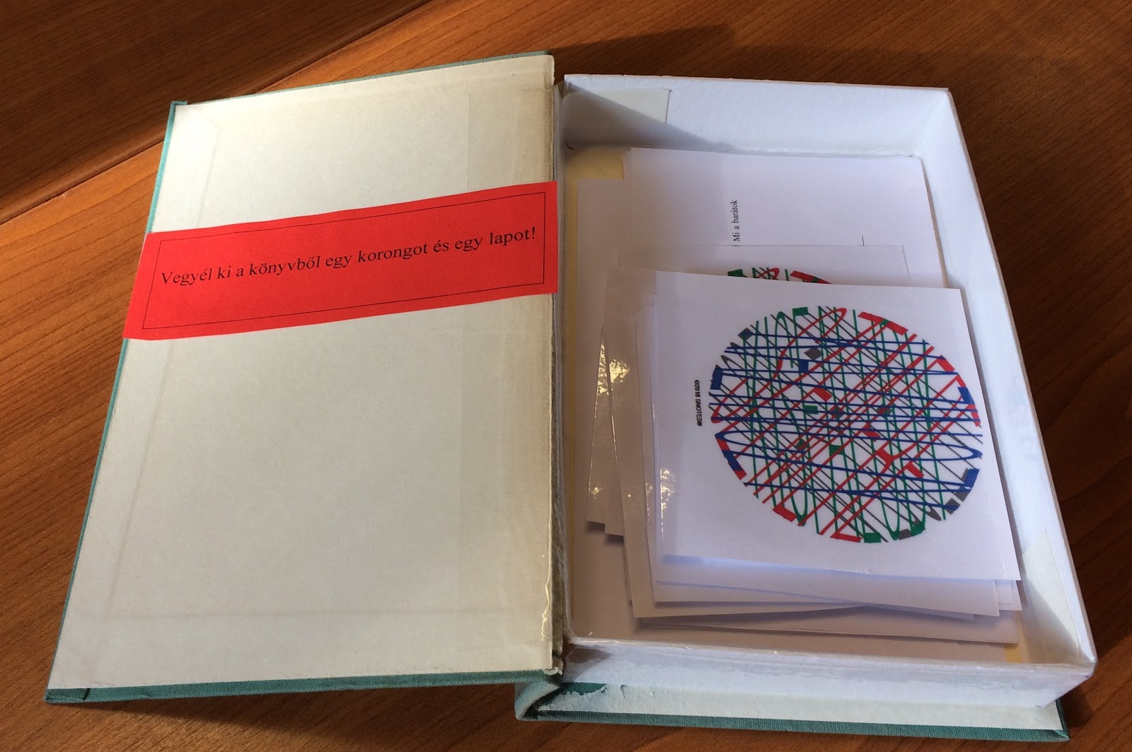 A legmacerásabb a selejt könyv dobozzá alakítása volt, ennek módjáról több videó is található a világhálón. Kimetszettem a könyv lapjait, majd kartonból keretet ragasztottam a könyv hátsó kötéstáblájára.
