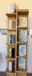 Nem jutott túl sok idő a készületekre, igyekeznem kellett az elajándékozott könyveim begyűjtésével, és az (éppen teljesen bezárt) iskolában tárolt alkotások megszerzésével. Végül, minden követ és ismeretséget megmozgatva, egy kis kiállításra elég könyvet sikerült összeválogatnom. S hogy a vallási tematikájú könyvek aránya javuljon, gyorsan alkottam egy új könyvet is, melyen a hit, remény, szeretet szimbóluma szerepel.
