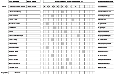 - minden jelzőből egy kijelölt betű beírása a 16. sorba