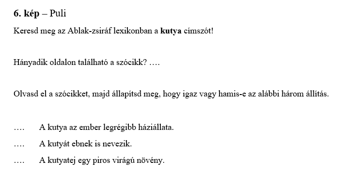 - Nehezebb – a sorszám mellé a megfelelő kép címét és a kiemelt betűt is le kell írni.