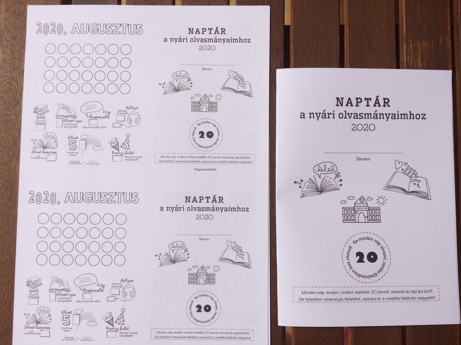 A négyoldalas naptárban külön-külön oldalon vezethetők a júniusi, júliusi és augusztusi olvasási alkalmak. Minden oldal plusz olvasási kihívásokat is tartalmaz, kedves, színezhető grafikákkal.
