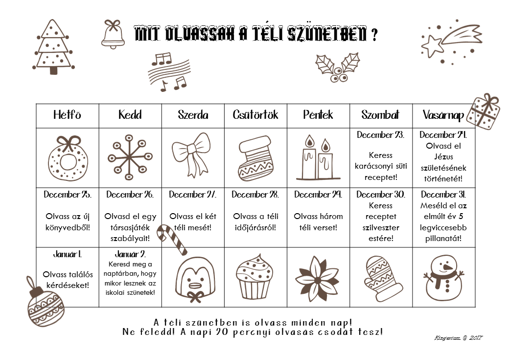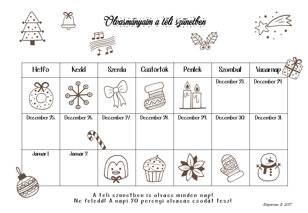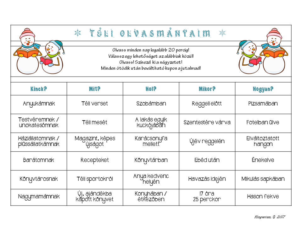 3. Olvasást ösztönző táblázat – nem csak a téli szünetre –