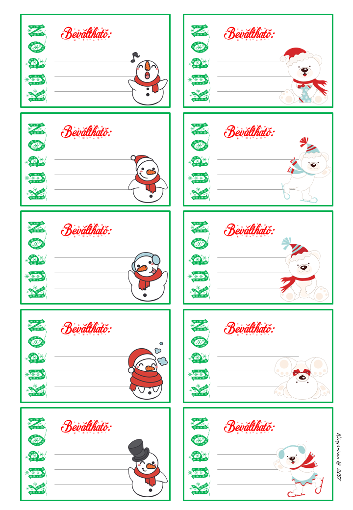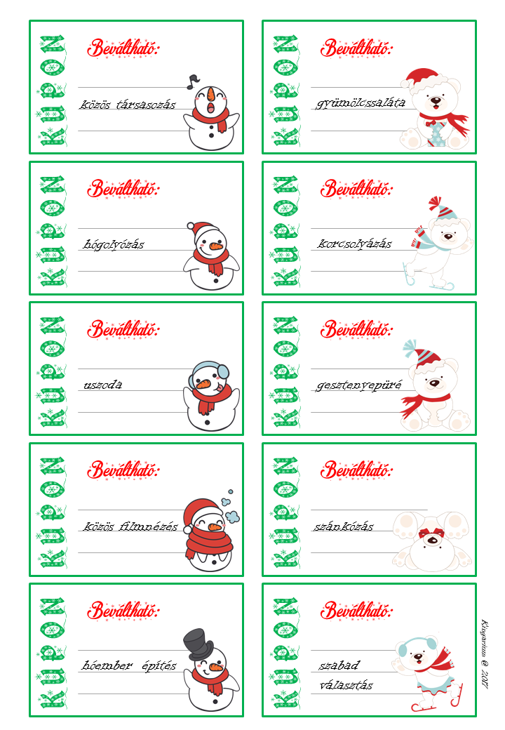 2. A téli szünetre kitölthető naptár